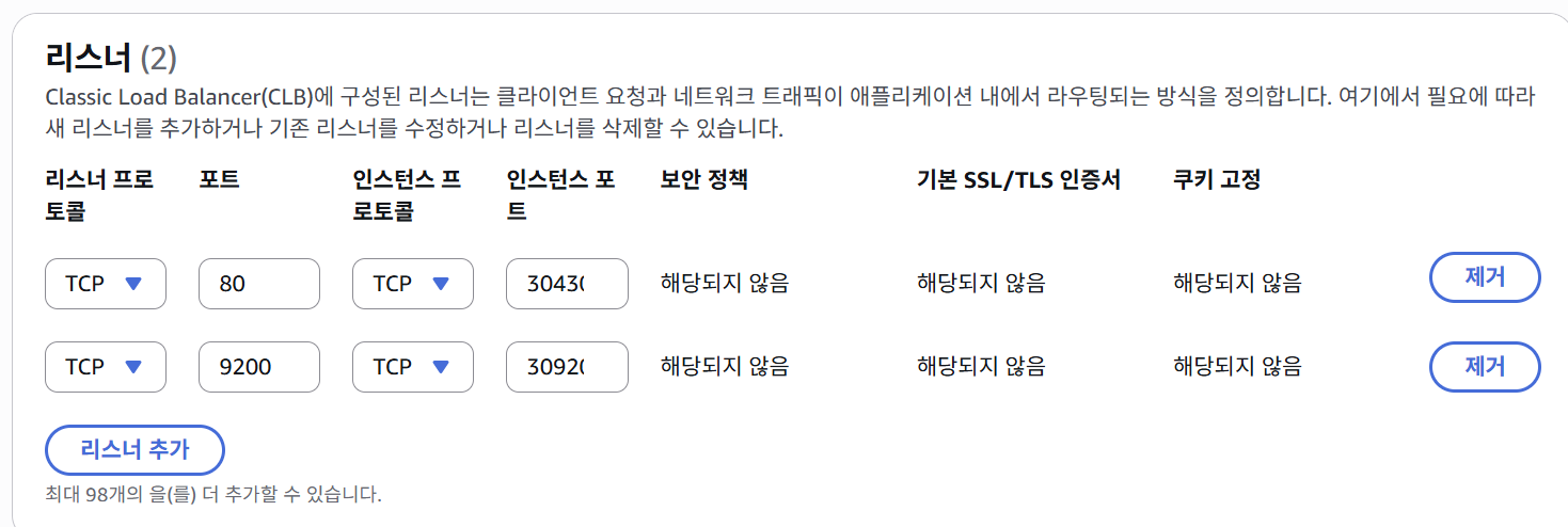 │ Listener 2: TCP 9200 → Instance Port 30920 │ ← elasticsearch 서비스