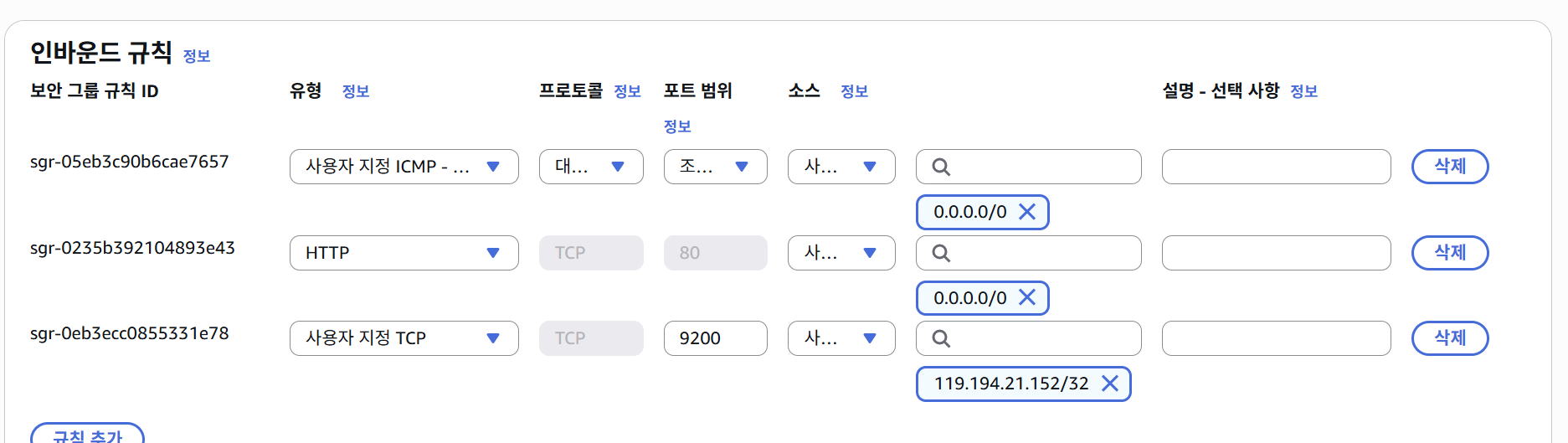 3. LoadBalancer의 9200 포트로 외부 접근 허용 위해 Loadbalancer Security group inbound rule 추가